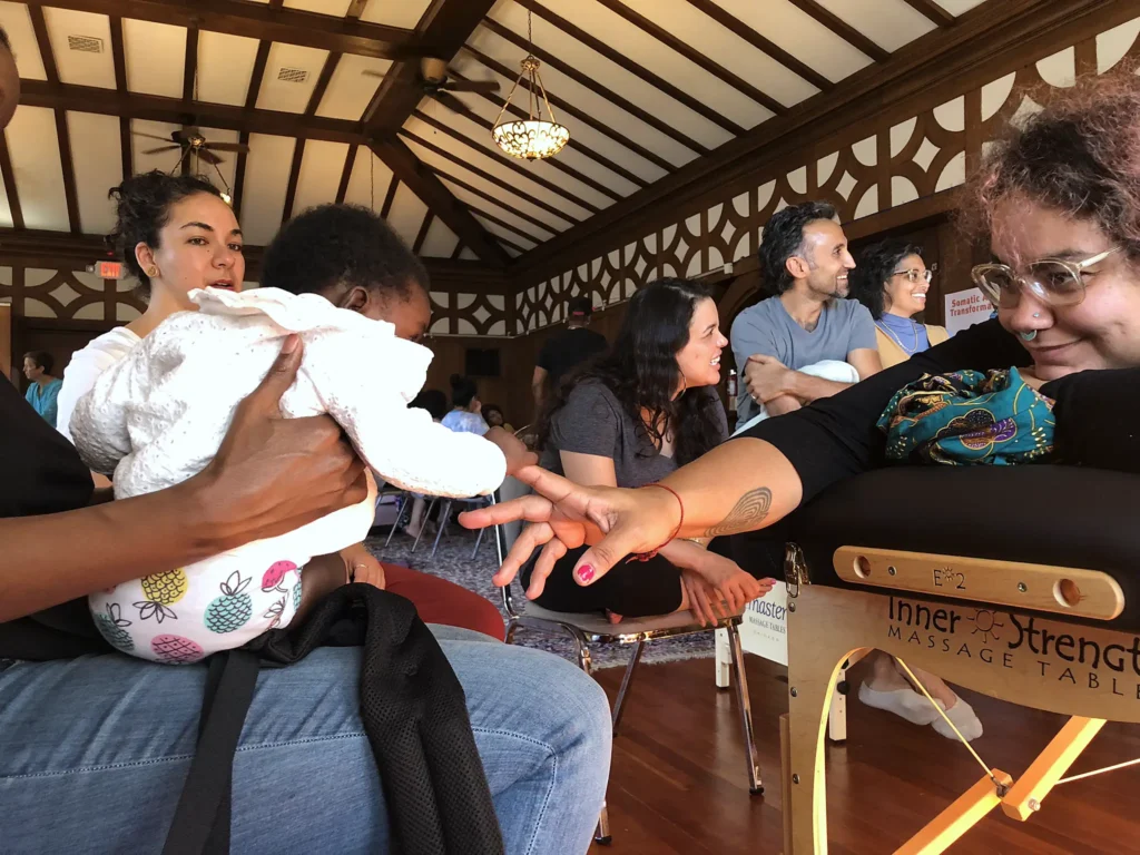 A core team of teachers—including Elizabeth Ross, Jennifer Ianiello, Liu Hoi-Man, Lisa Thomas-Adeyemo, and Vassilisa Kapila — began teaching Somatics & Trauma through an intensive apprenticeship with Staci Haines.